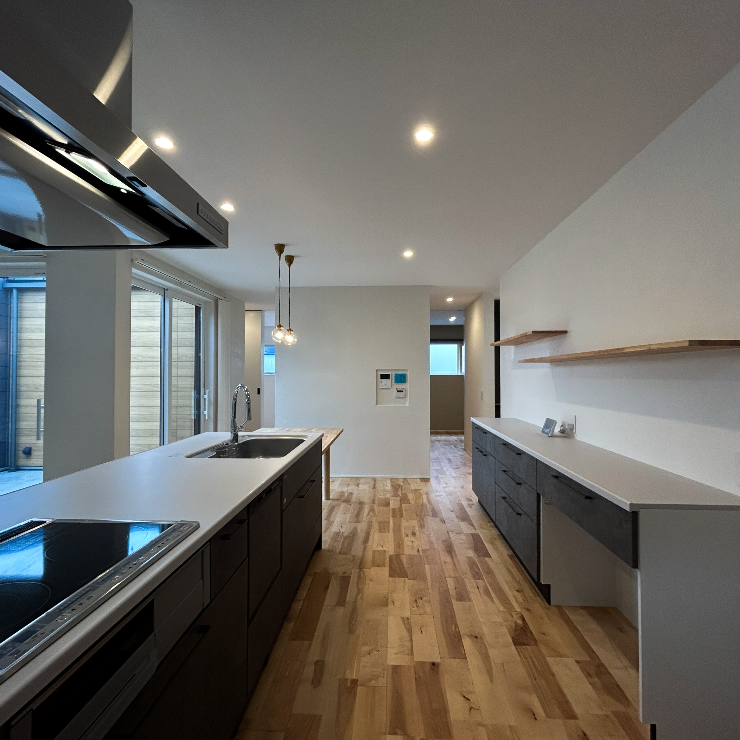 料理中も、家族が横を通ってもストレスなし。「キッチンは狭くしたくなかった」という想いをそのまま形にした、毎日の小さな快適さが積み重なる設計です。