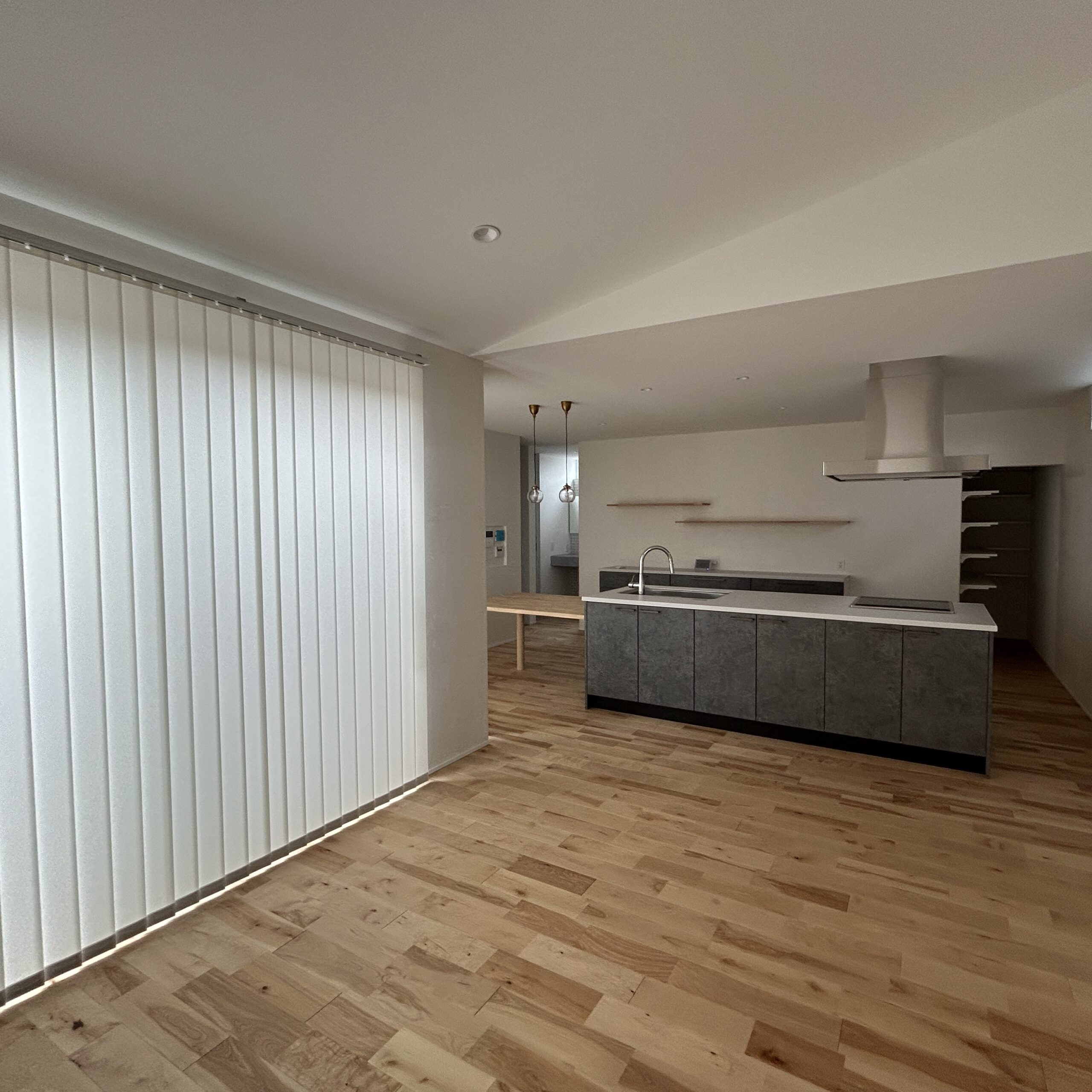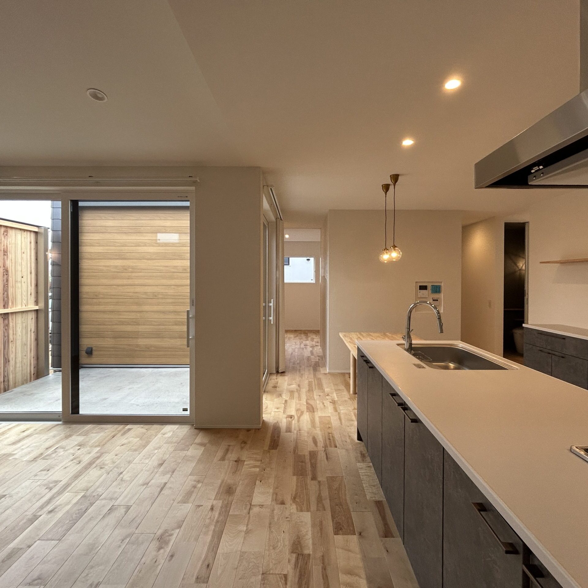 30代夫婦+子ども+愛犬がちょうどよく暮らせるサイズ感。にぎやかすぎず、静かすぎない。コの字型がつくる距離感が、家族それぞれの時間を心地よく保ちます。大きくないのに、なぜか心地いい。理由を言葉にする前に、まず体感してほしい平屋です。