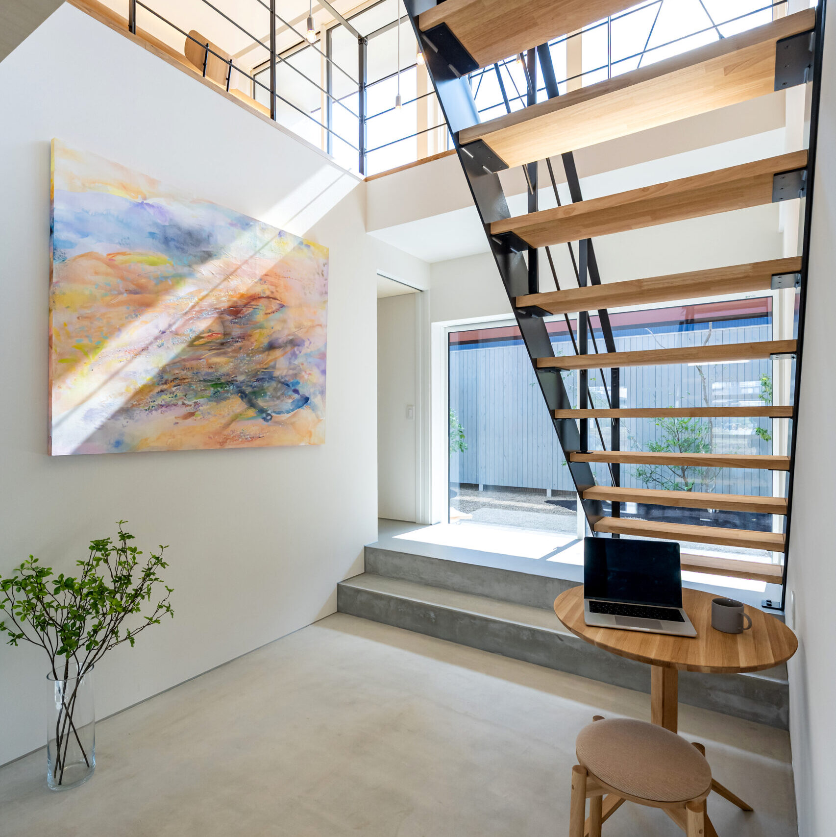 土間ラウンジと吹き抜け階段
