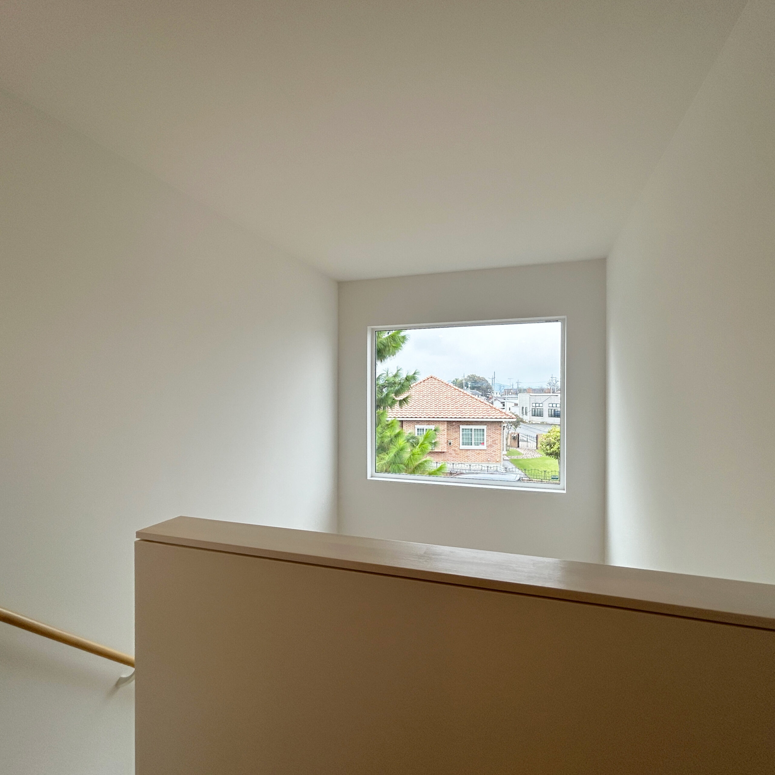 「お城のような光と白の世界」白を基調にした内観に、光がやわらかく広がる。階段から差し込む自然光が空間全体を包み込みます。